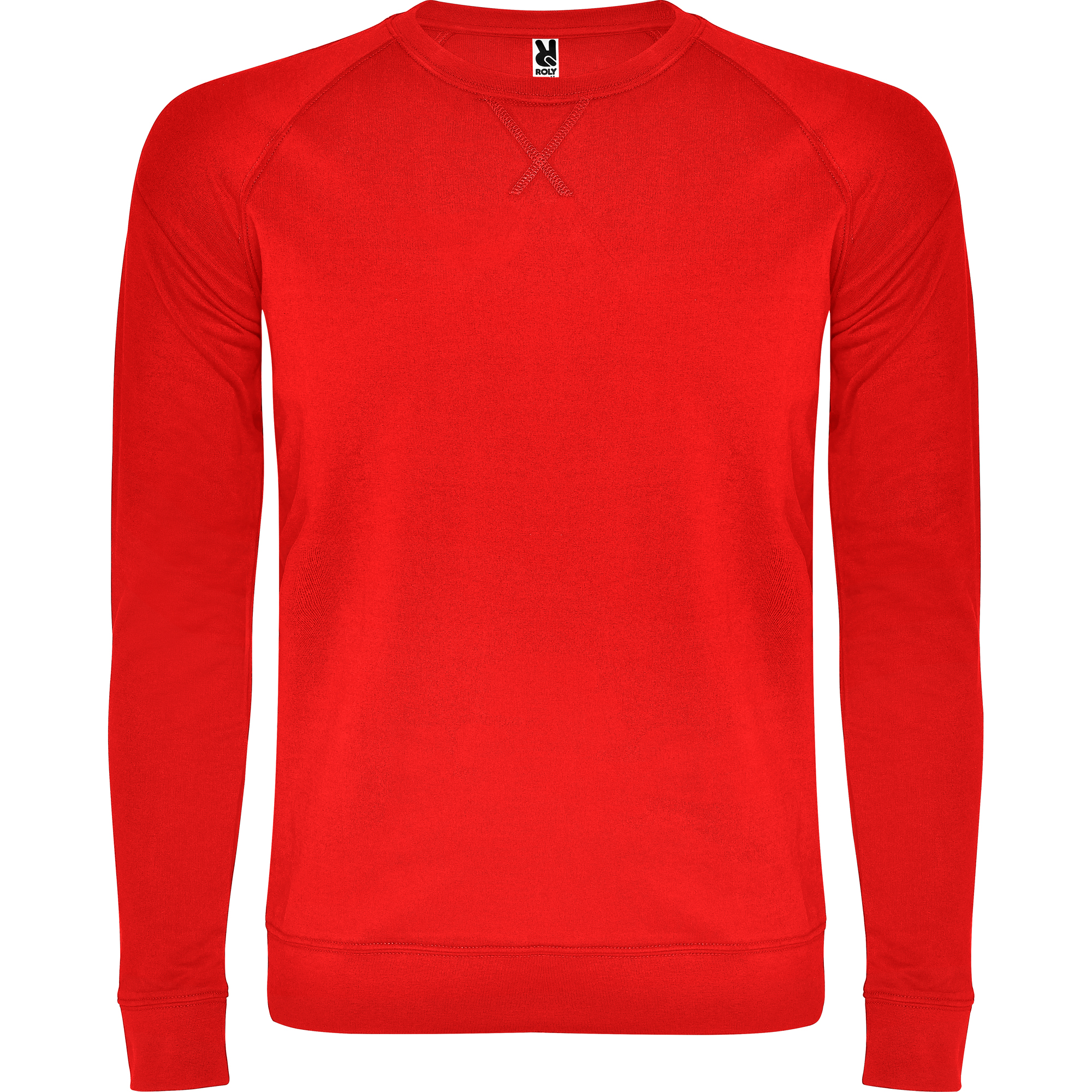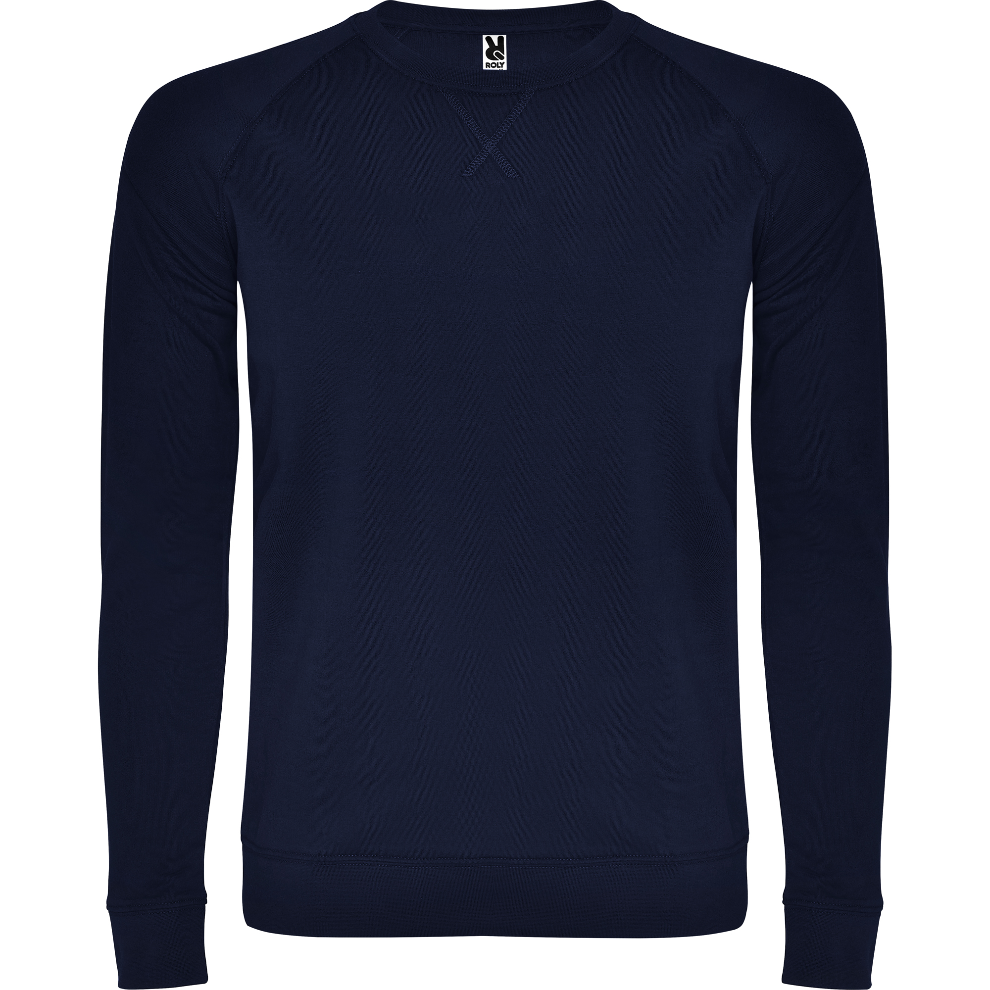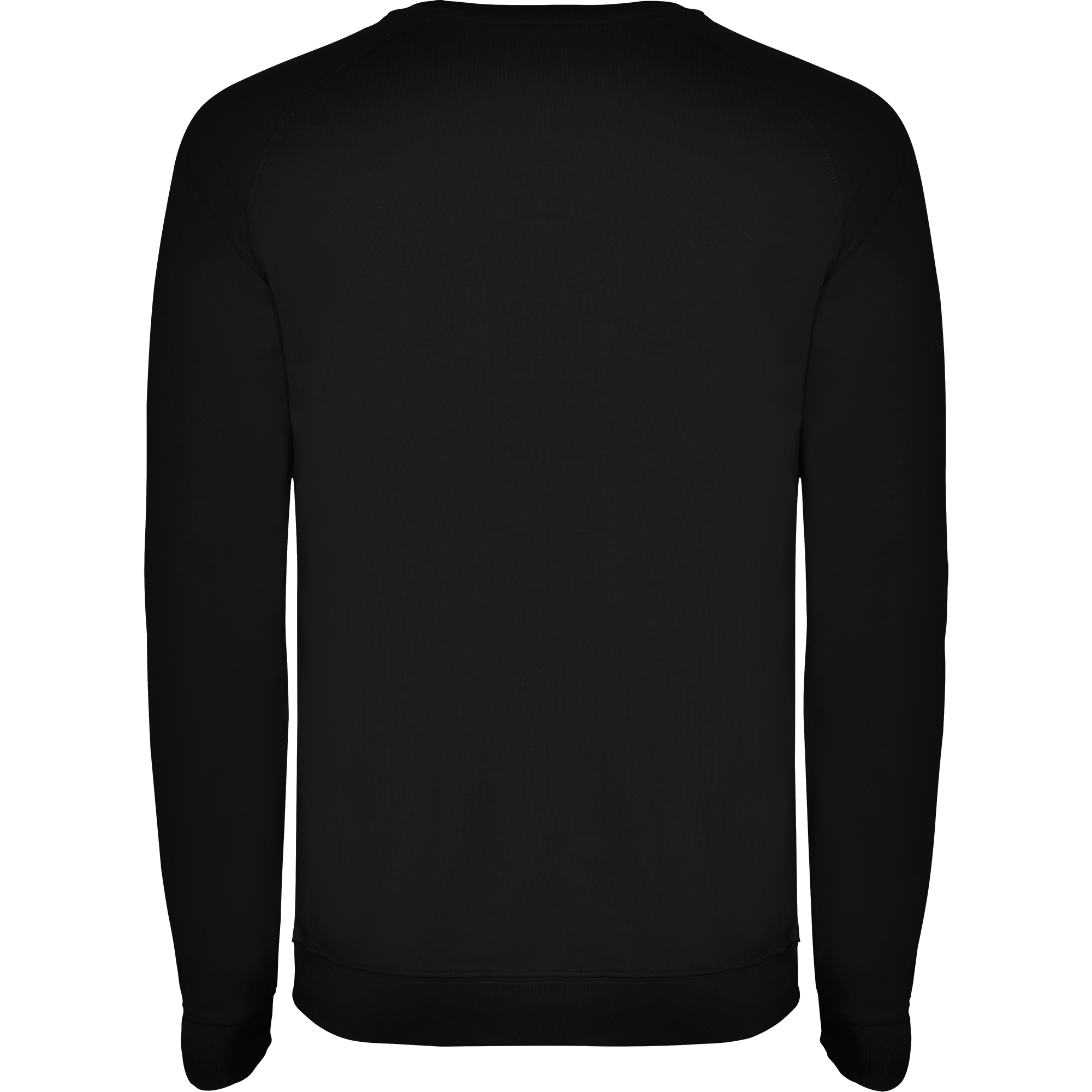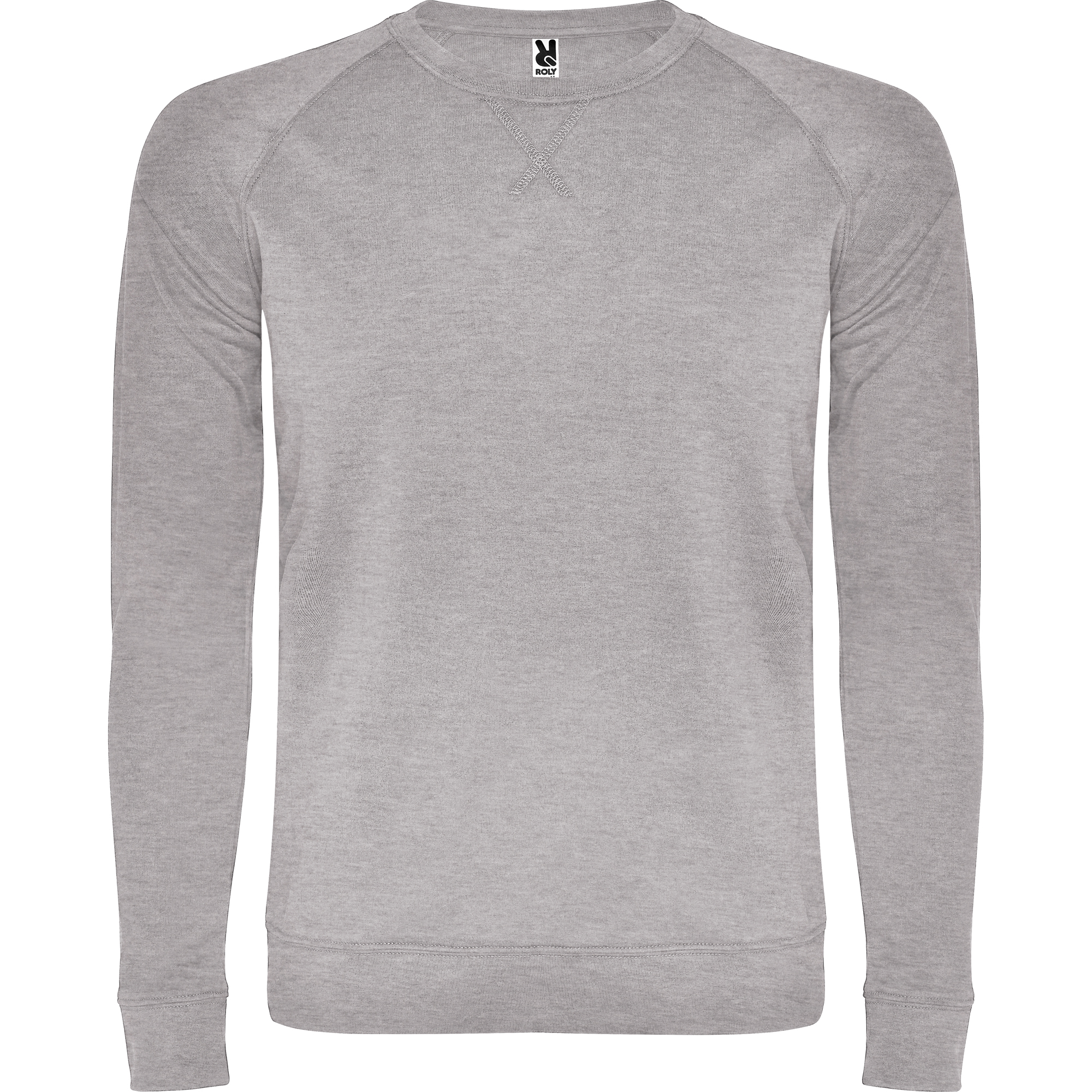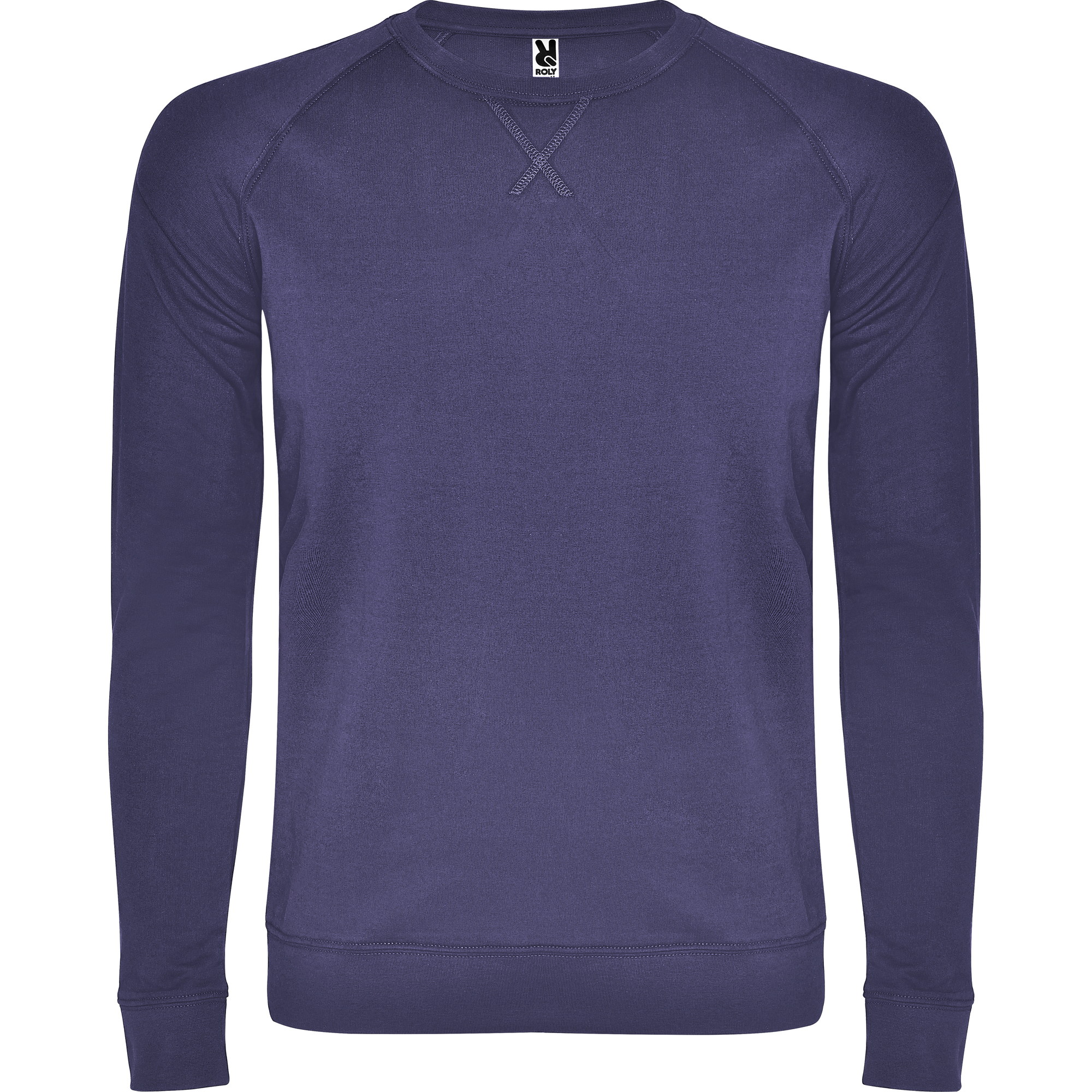 Felpa girocollo unisex in cotone non garzato. Manica raglan. Colletto, polsini e vita a coste 2×1 con elastan. Cucitura piatta decorativa a punto croce. Cuciture nastrate in tessuto coordinato.