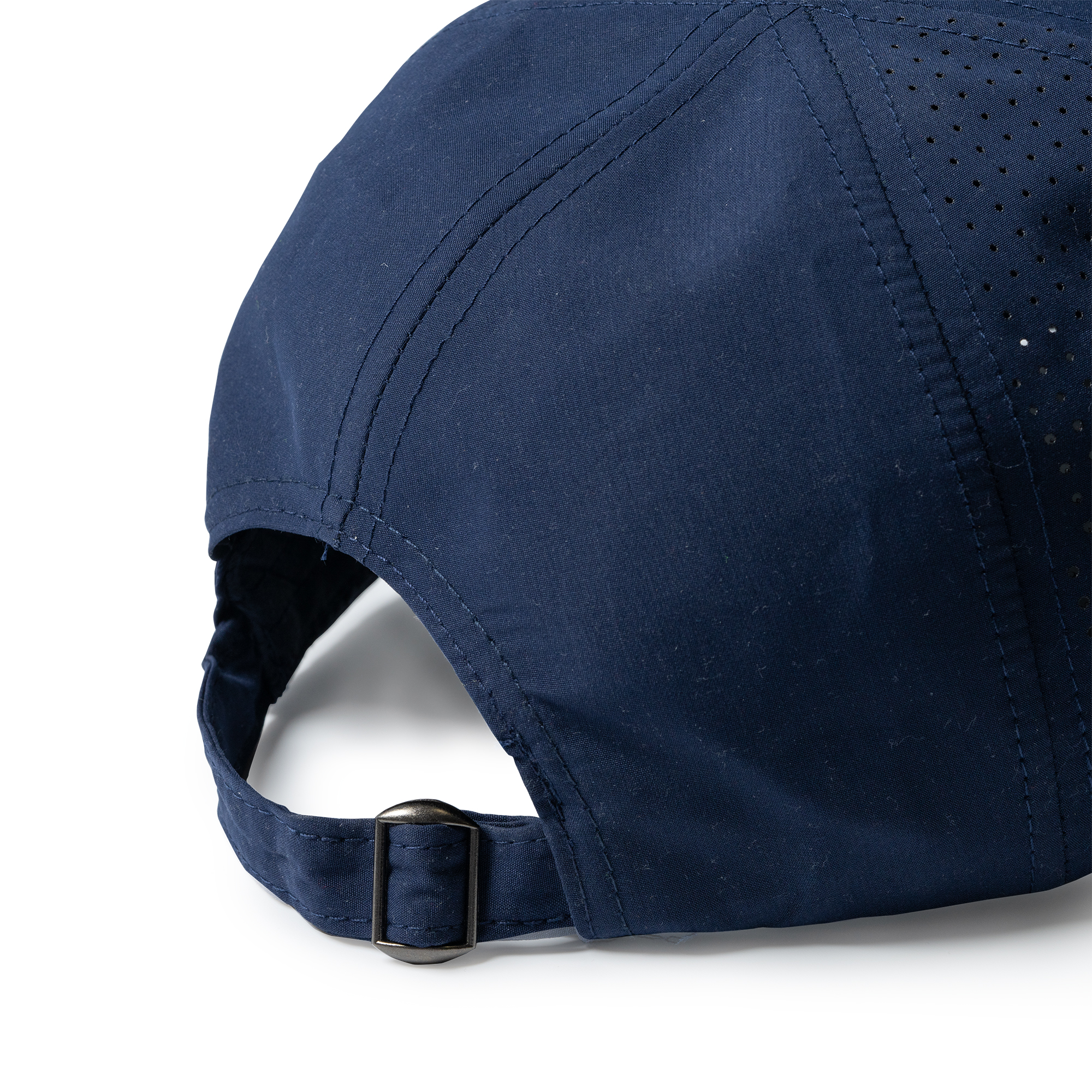 Berretto sportivo traspirante in 100% microfibra, con 6 sezioni. Chiusura con fibbia regolabile e asole di ventilazione.
