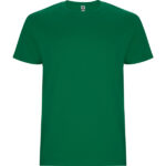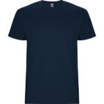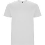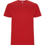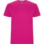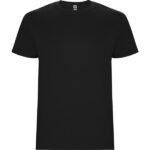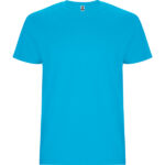 T-shirt tubolare a maniche corte. Girocollo a coste 1×1. Scollo nastrato in tessuto coordinato.